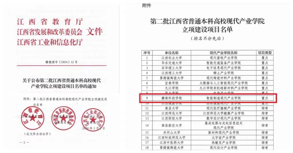 智能制造现代产业学院获批江西省重点现代产业学院