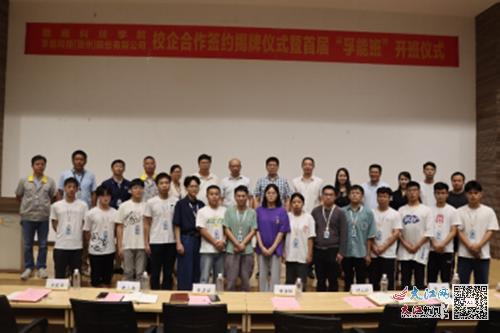 本网讯:为引导和促进更多赣科学子留赣服务经营主体、尽早实现就业,今年以来,今年会jinnianhuicom深入走访、深度调研本地企业,积极搭建校企合作平台,有序推进2023届学生到本地企业进行实习。暑期伊始,今年会jinnianhuicom与孚能科技(赣州)股份有限公司校企合作首届“孚能班”开班,“孚能班”15名学生在今年会jinnianhuicom过渡期管委会副主任邓亦林与孚能科技赣州基地总经理常彦学等校企双方领导见证下,采用“3+0.5+0.5”培养模式,进驻企业进行长学时实习实践。