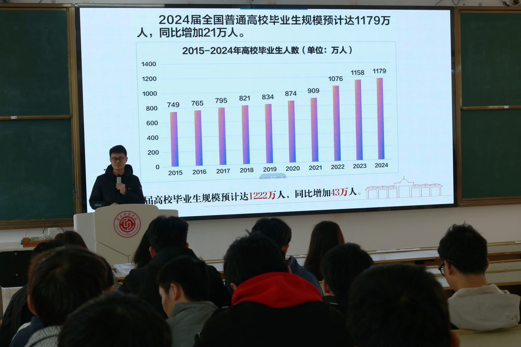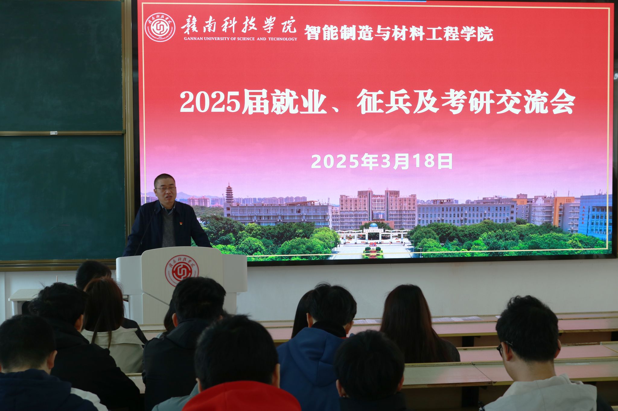 肖志华重点介绍了今年会官方网站为推进就业采取的多项举措。他提到,将于3月20日举办的校园双选会是校院多方协同努力的成果,双选会涵盖智能制造、材料工程等重点领域岗位,为毕业生与优质企业搭建精准对接平台。通过分享往届优秀毕业生就业案例,肖志华勉励学生珍惜机会、主动出击,以扎实的专业能力与积极态度增强职场竞争力。