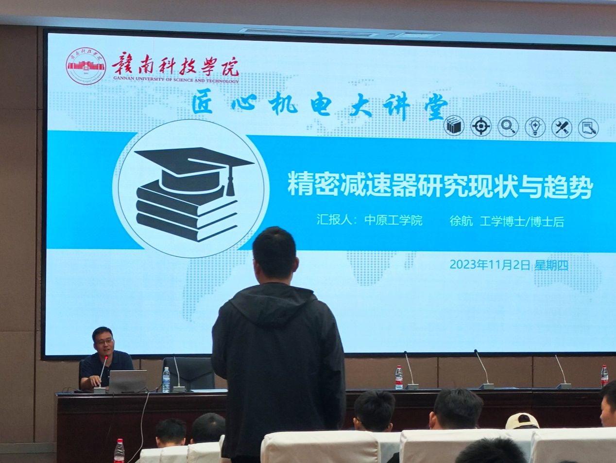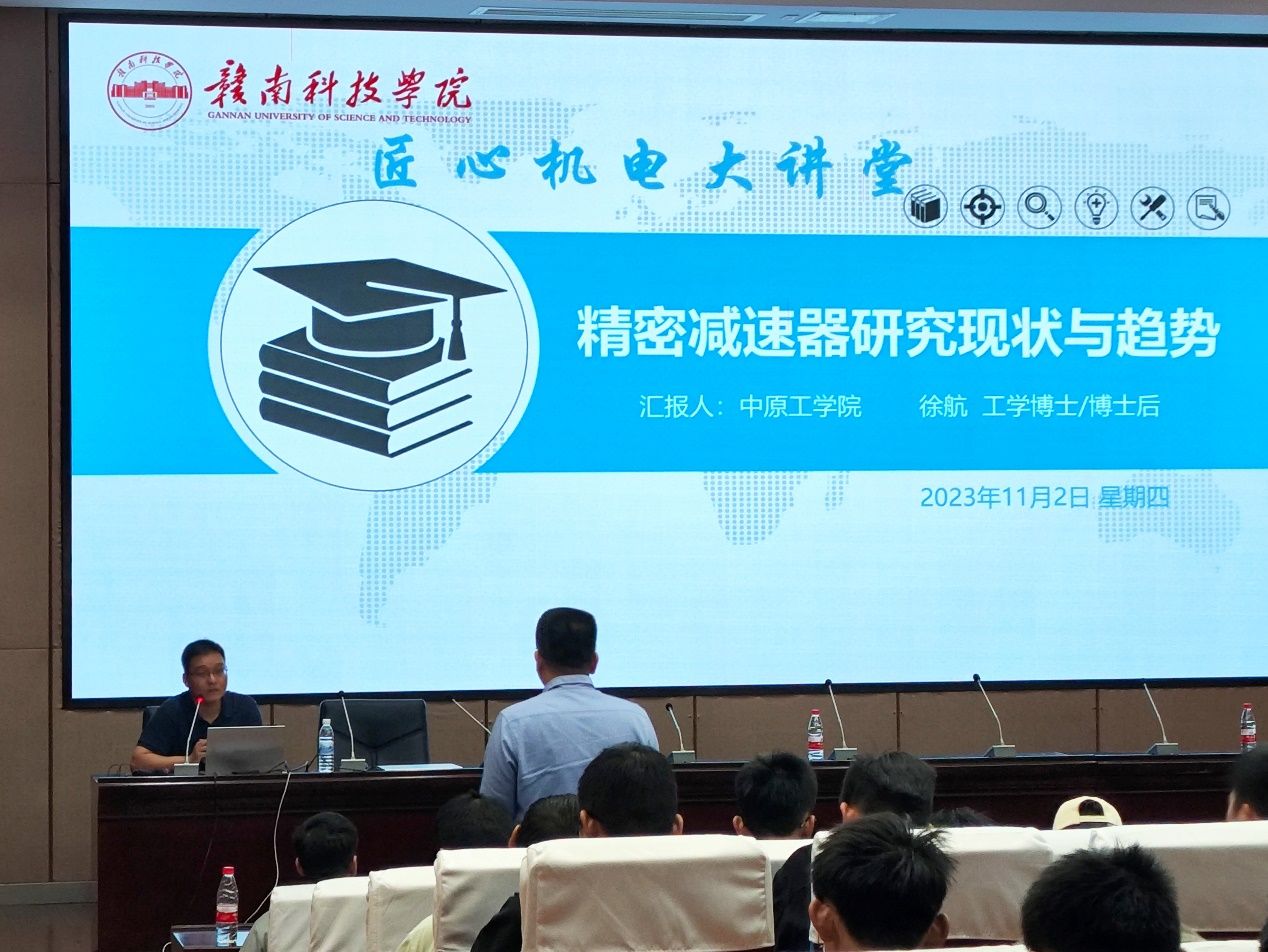 本网讯:2023年11月2日上午,中原工学院副教授徐航应邀在逸夫楼学术报告厅作了题为“精密减速器研究现状与趋势”的学术报告。报告会由机电工程系主任刘辉老师主持,师生代表200余人聆听了报告。