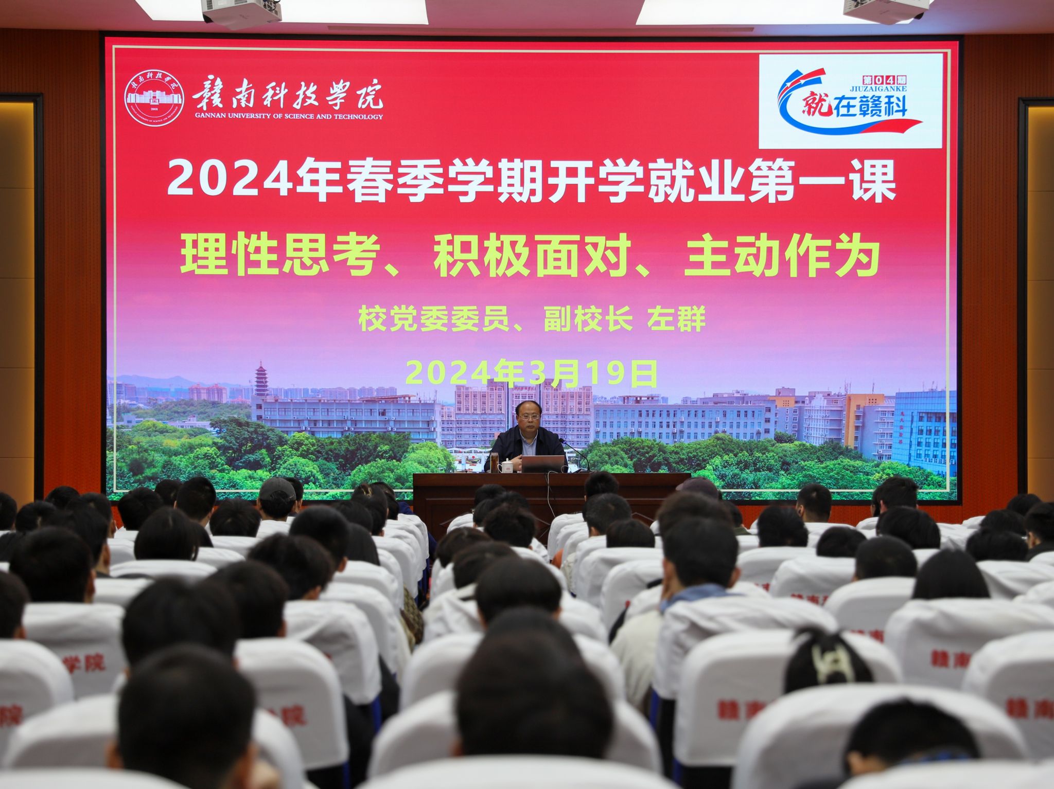 本网讯:3月19日下午,学校党委委员、副校长左群在图书馆学术报告厅为今年会官方网站师生讲授2024年春季学期“开学就业第一课”暨就在赣科”就业育人大讲坛第四讲,智造学院班子成员、全体辅导员及学生代表共同聆听。讲座由朱根松主持。