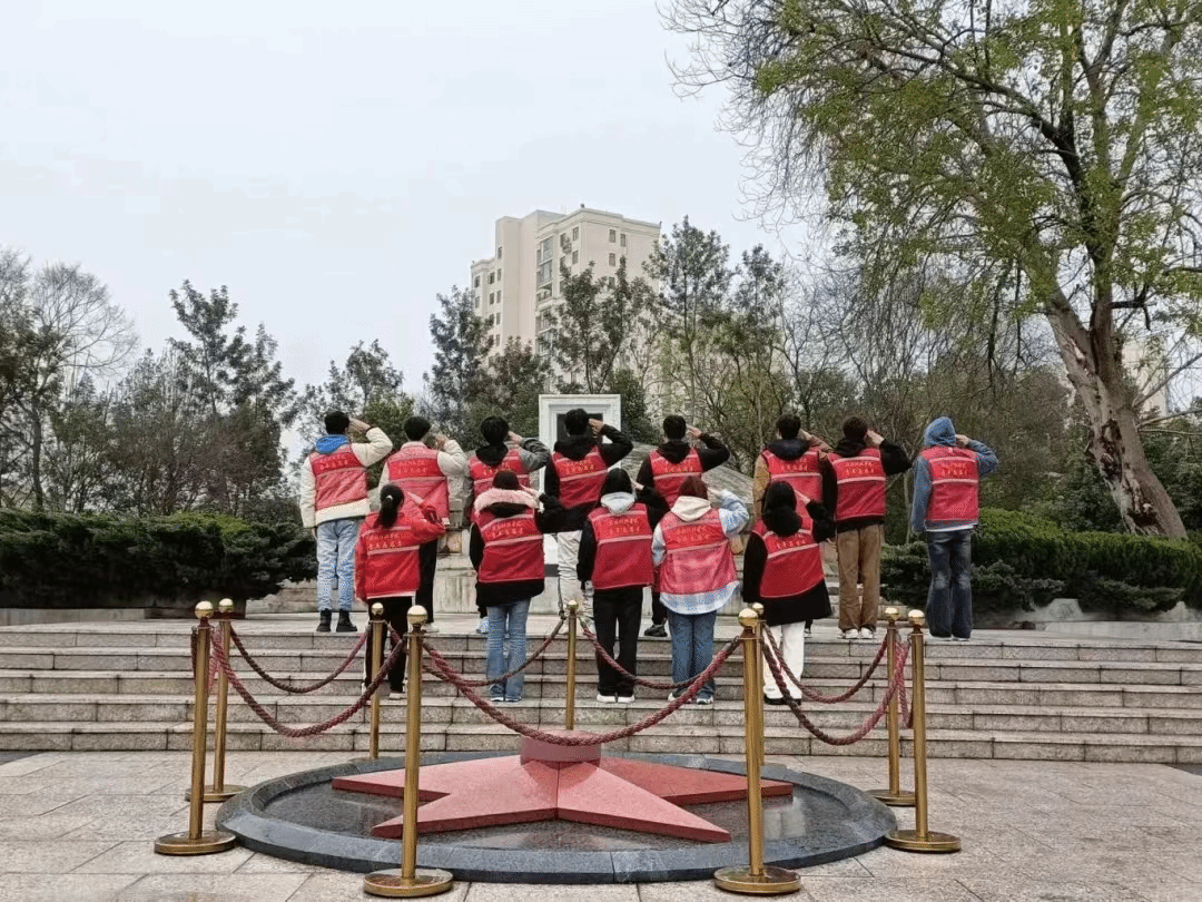 烈士陵园松柏苍翠,草木葱茏。巨型烈士群像雕塑前,我系志愿者向革命先烈鞠躬、默哀,感受革命先烈就义前坚贞不屈、视死如归的光辉形象。