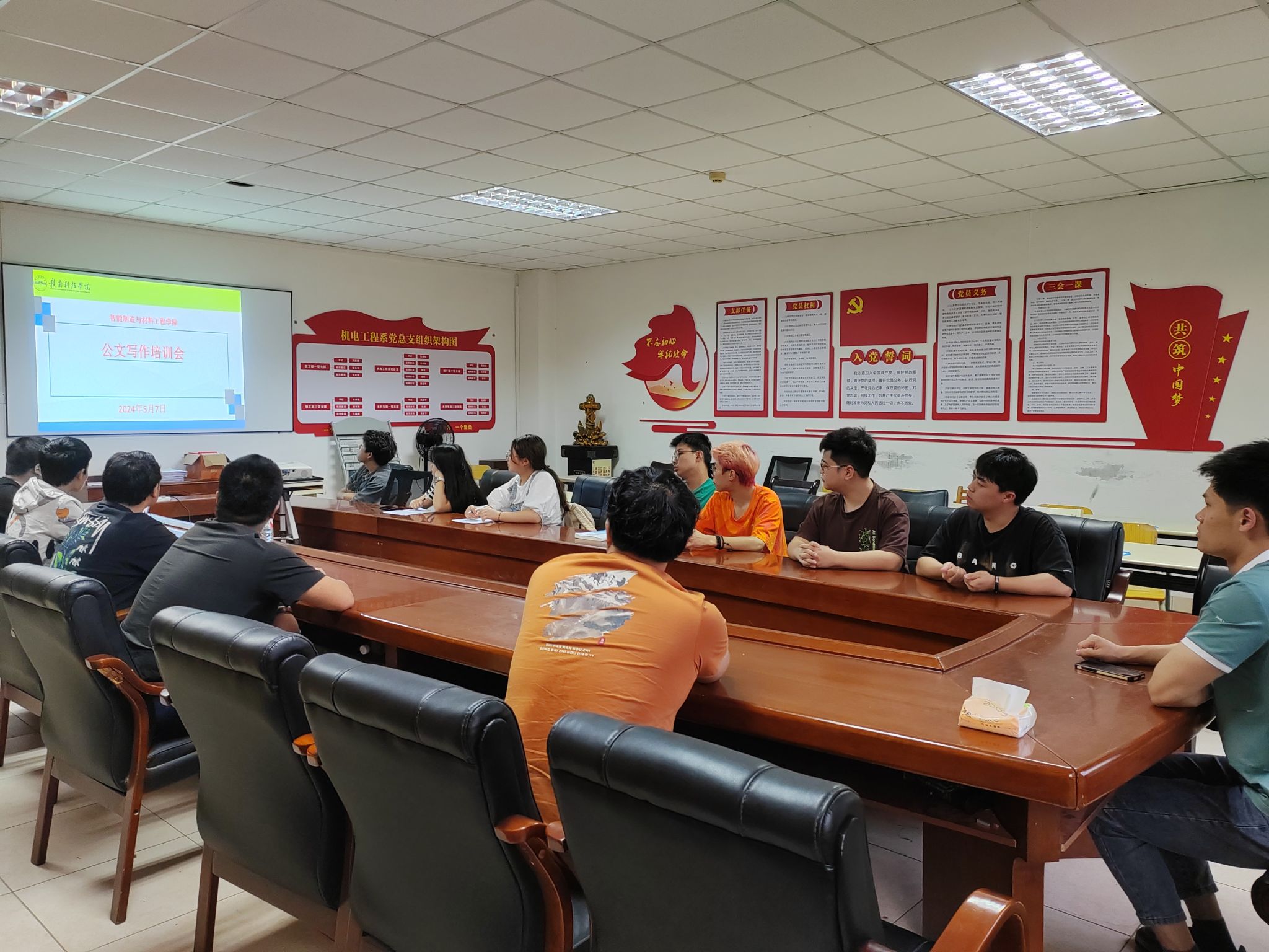 本网讯:为提高学院团学骨干公文写作能力,加深对文章格式和细节的深刻理解,2024年5月7日,今年会官方网站在工程研究院s417a召开团总支、学生会干部公文写作培训会,会议由团总支学生第二副书记饶宇鸿主持,团委书记卢名亮老师参与,团总支、学生会的全体团学骨干干参加此次会议。