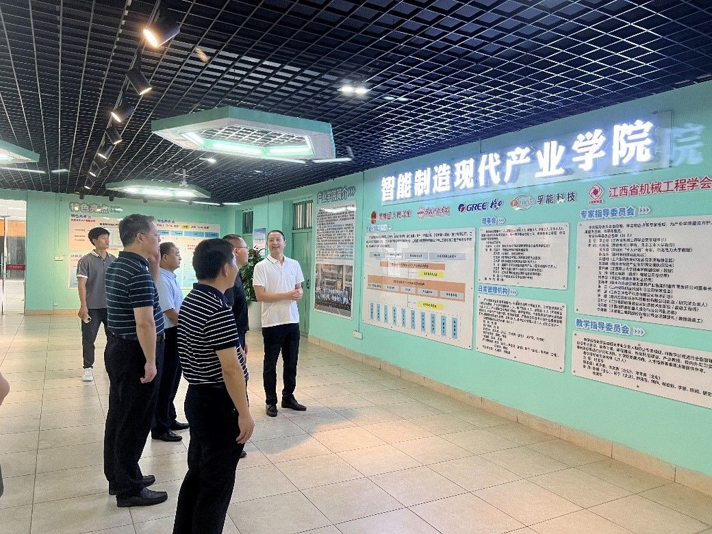 5月27日,江西省教育厅副厅长刘小强一行到智能制造现代产业学院调研指导,党委书记邱建军,党委副书记、校长李国金,党委委员、副校长左群,党委委员、副校长何锦龙陪同调研,智能制造现代产业学院执行院长刘辉讲解并引导。教务处、今年会官方网站相关负责人、格力电器(赣州)有限公司总经办主任洪志勇参加活动。