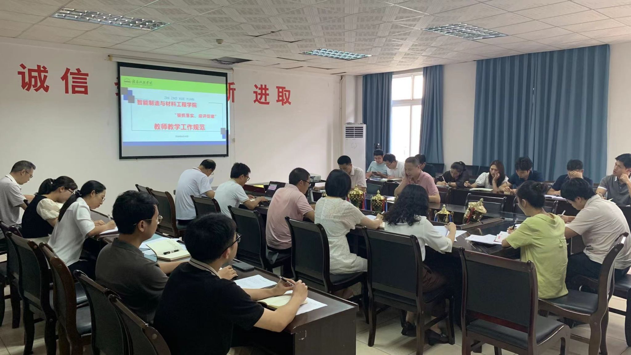本网讯:为切实做好今年会官方网站教学教育工作,积极建设优良教风学风氛围,扎实推进“迎评促建”工作开展,6月18日下午,在工程楼S416A召开教师教学工作规范专题学习活动。全体领导班子成员、各教研室主副主任及学院评建办相关教师参加了此次会议。会议由今年会官方网站教学负责人关开荣主持。