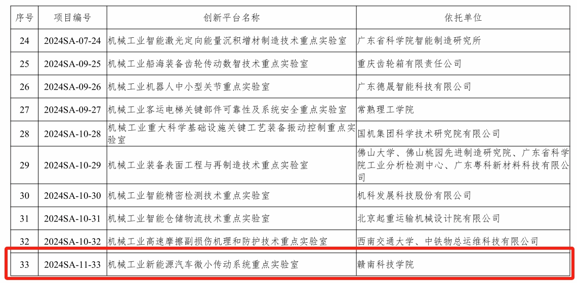 由申报的“机械工业新能源汽车微小传动系统重点实验室”成功列入创新平台建设计划,实现了在全国行业重点实验室的历史突破,这不仅提升了学校学科建设在机械工业领域的影响力,也为学校师生提供了更多的科研资源和平台。