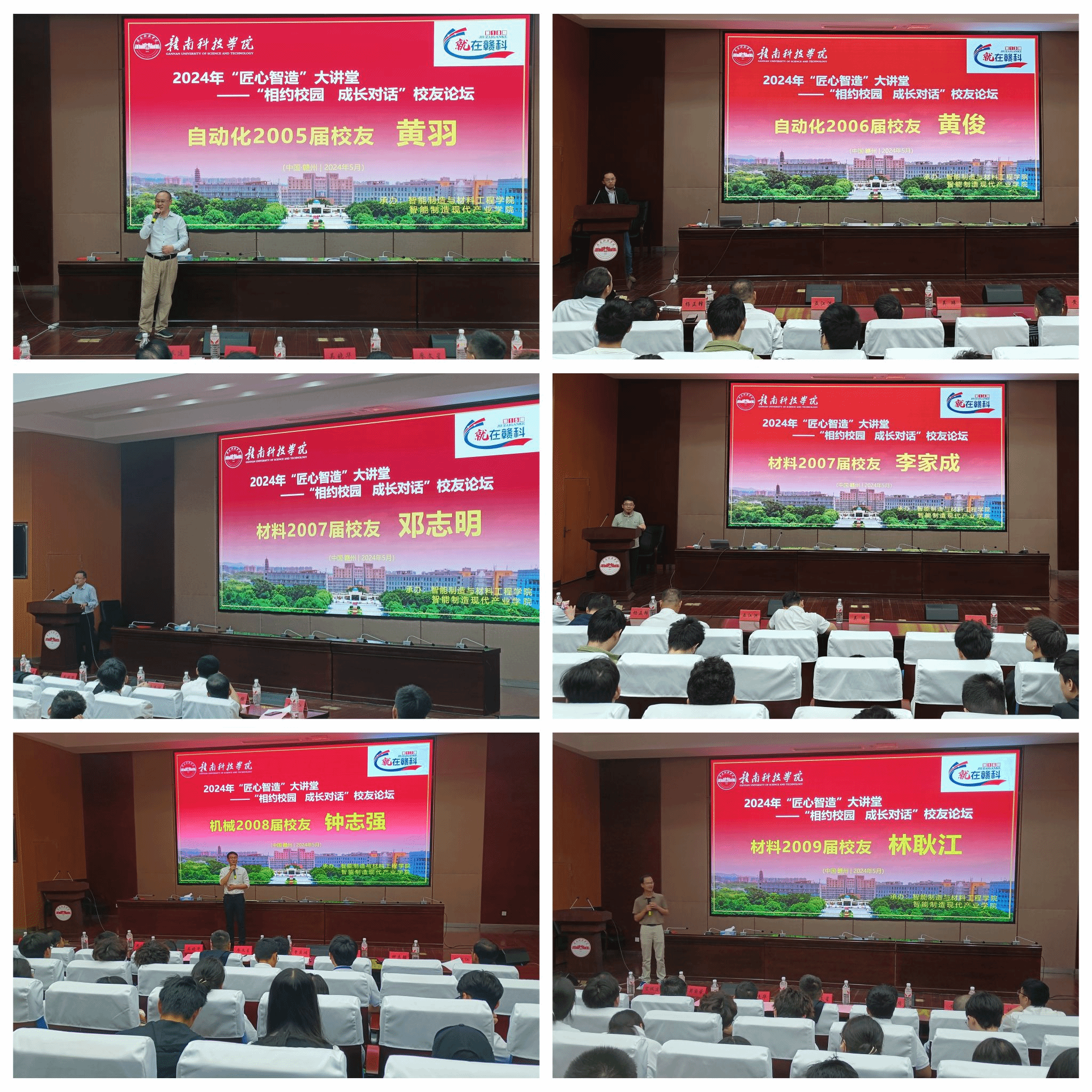 5月3日至4日,在校友返校见证学校校友会成立之际、智造学院邀请了十名优秀代表做客2024年“匠心智造”大讲堂开展“相约校园 成长对话”论坛活动,智造学院师生代表共200余人参加。活动中,校友们介绍了在本行业内取得的成就和成功经验,结合自身成长经历,对大学生求职创业、职业规划等关键选择给出建议,寄语在校大学生专心致志做好一件事,积极主动展现闪光点,自信努力完成新目标,最终定能绽放自己的独有光芒。现场妙语连珠,气氛热烈,同学们积极提问,抛出了自己的成长之问,与校友们开展互动。本次活动是2024年“就在赣科”就业育人系列讲坛和劳模讲堂的一部分,是智造学院坚持五育并举,培养德智体美劳全面发展大学生的新举措。