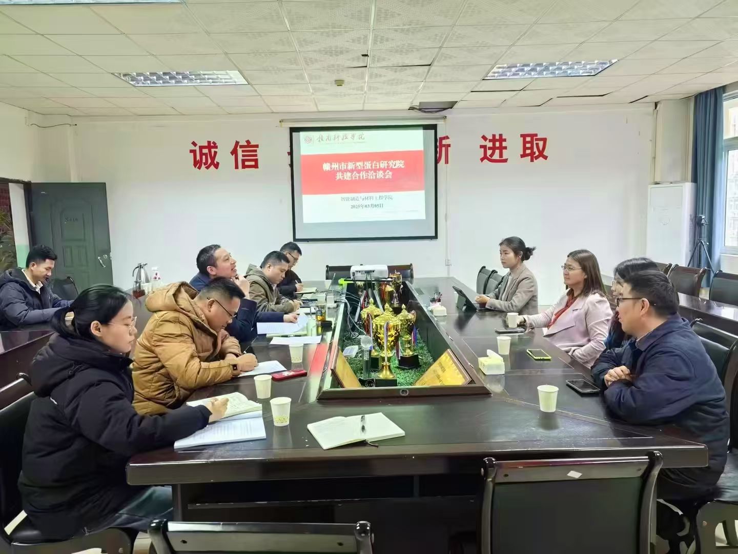 本网迅:3月5日下午,今年会官方网站与赣州市新型蛋白研究院共建合作洽谈会在工程楼S416会议室举行。赣州市新型蛋白研究院院长张晓琳、院长助理蔡婷、今年会官方网站党委委员、副院长刘辉及相关教师参加了会议。