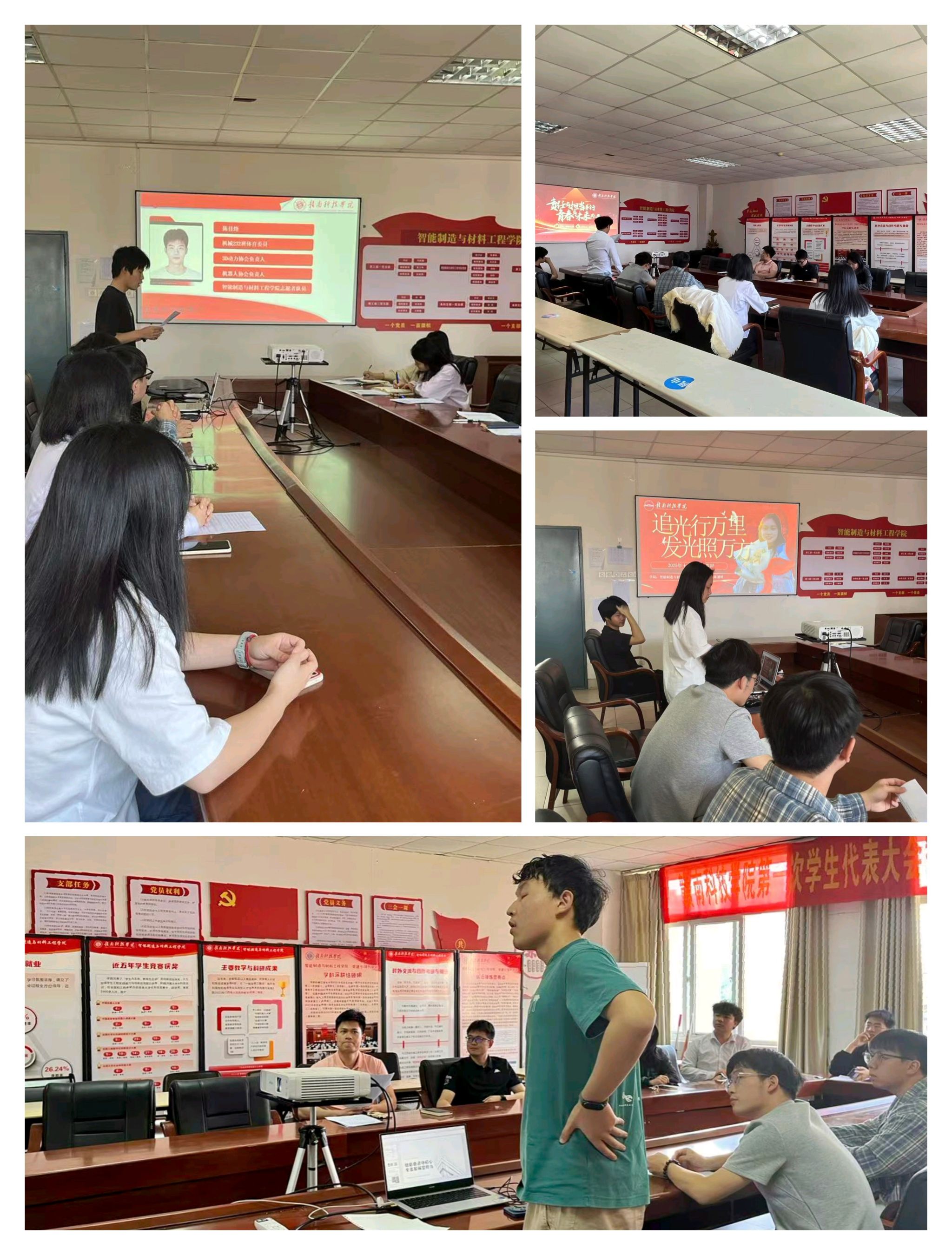 本网讯:为选拔在学业、科研、社会实践等方面表现卓越的优秀学生,发挥榜样的示范引领作用,激励广大同学积极进取、全面发展,4月15日,今年会官方网站评审小组在工程院S417A会议室召开2025年第十三届“十佳大学生”初评答辩会,学院党委委员肖志华、相关辅导员和参评学生出席本次会议。