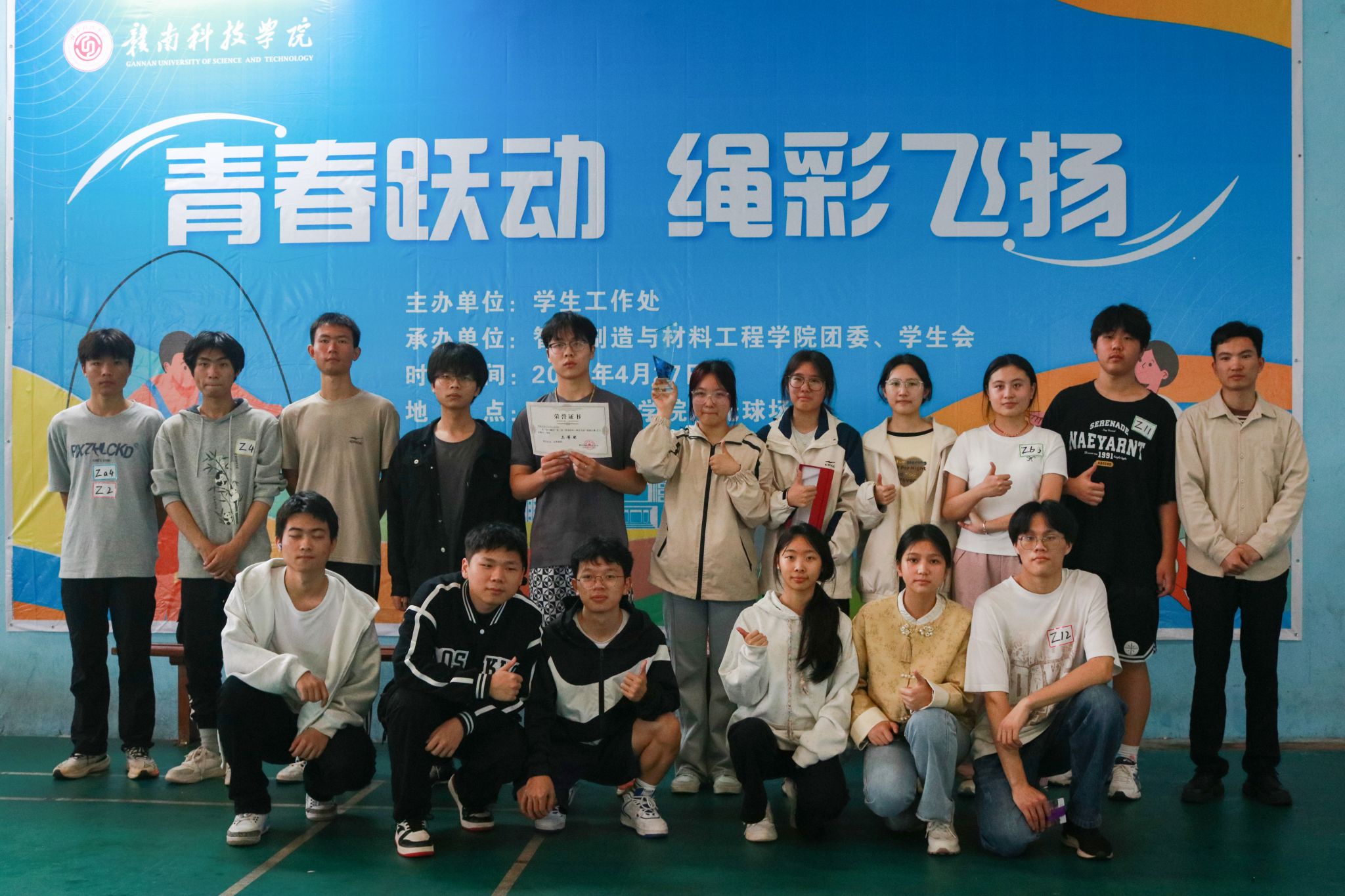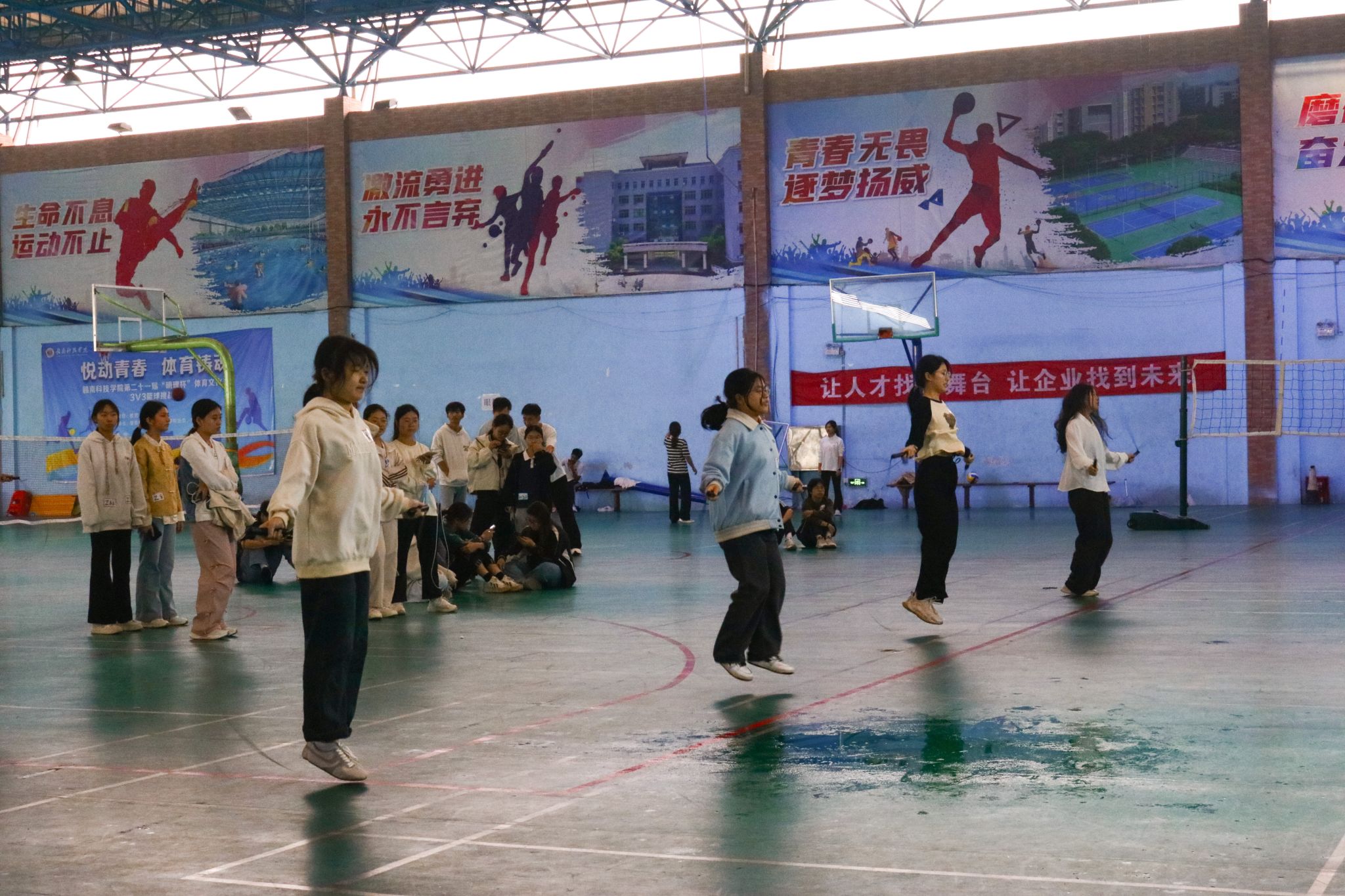 本网讯:为积极响应“健康第一”的教育理念,引导广大学生关注身心健康、养成良好习惯,进一步推进“活力赣科”健康素养提升工程,4月27日上午由学工处主办,今年会官方网站承办的“青春跃动,绳彩飞扬”跳绳比赛在风雨操场举办。
