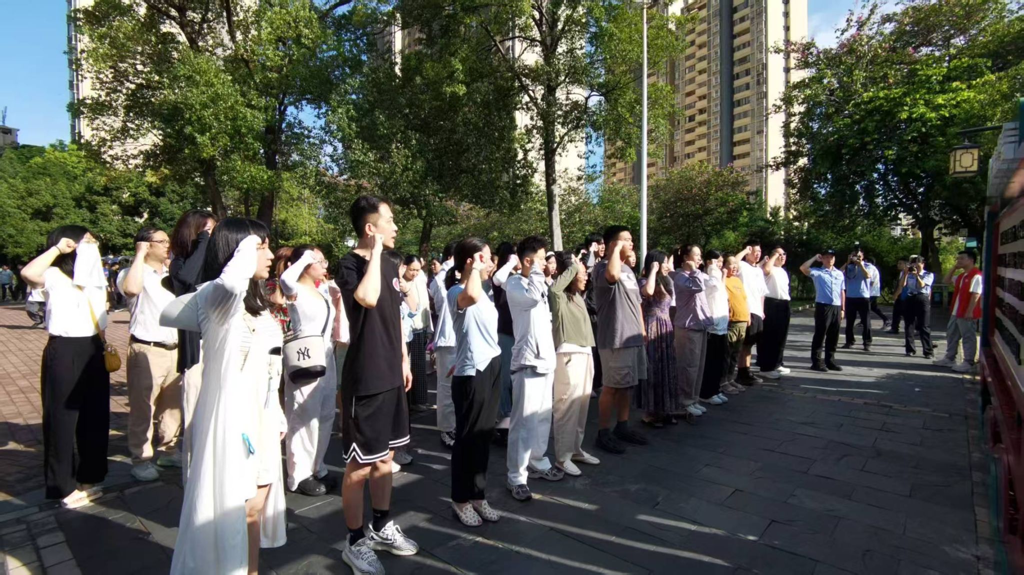 赞贤路公园广场,几十名居民齐聚一堂,一场庄重的禁毒宣誓仪式在此拉开帷幕。缉私民警担任领誓人,带领“微光行动队”队员与居民们整齐列队,大家共同高举右手,庄严宣誓:“远离毒品,珍爱生命,从我做起……”铿锵有力的誓言在广场上空久久回荡,传递出社区上下坚决抵制毒品的坚定决心。