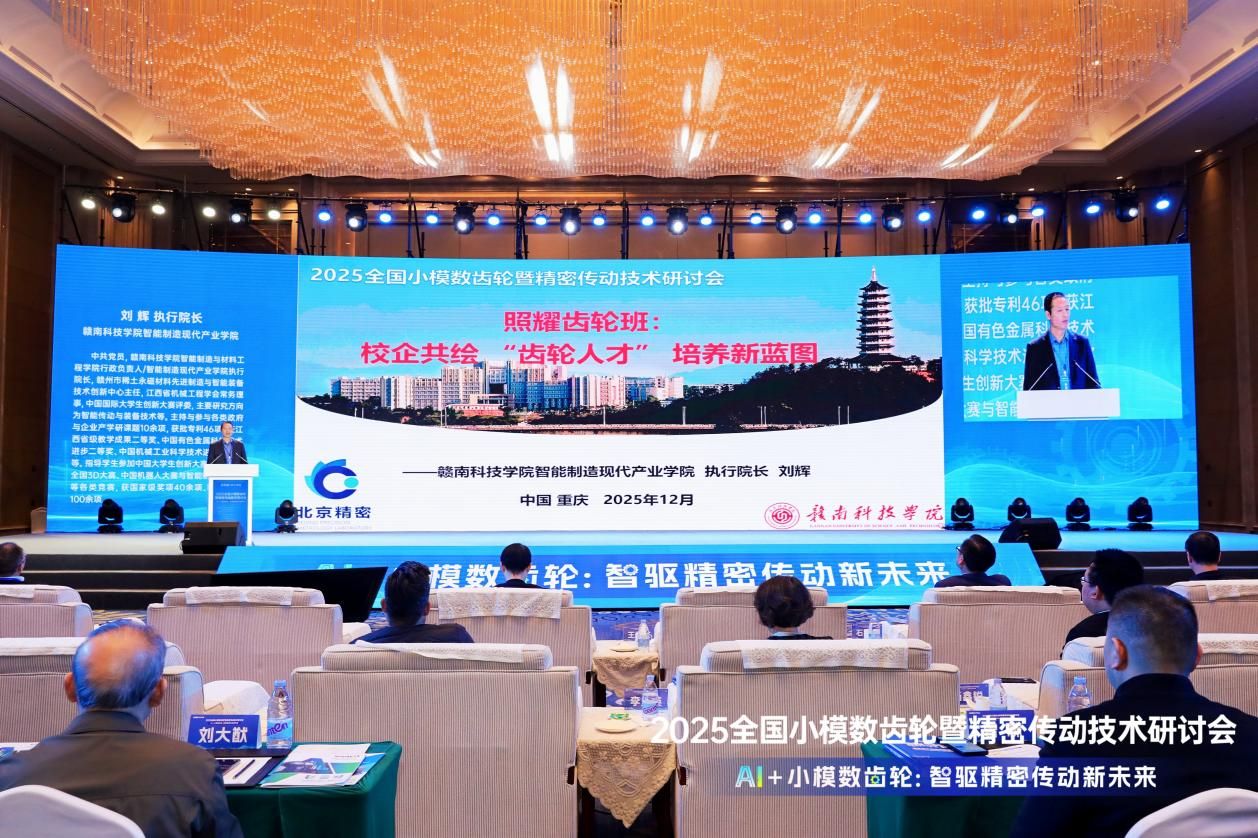 12月12-14日,2025全国小模数齿轮暨精密传动技术研讨会在重庆隆重举行,会议以“AI+小模数齿轮:智驱精密传动新未来”为主题,汇聚全国顶尖企业与科研力量,被誉为中国小模数齿轮、精密传动领域“技术风向标”。今年会官方网站副院长、智能制造现代产业学院执行院长刘辉特邀出席会议并在开幕式作主旨报告——照耀齿轮班:校企共绘 “齿轮人才” 培养新蓝图,与全国减速机标准化技术委员会、北京工业大学、重庆清平机械有限责任公司等行业权威机构及头部企业的专家代表共商技术趋势、共筑产业生态。