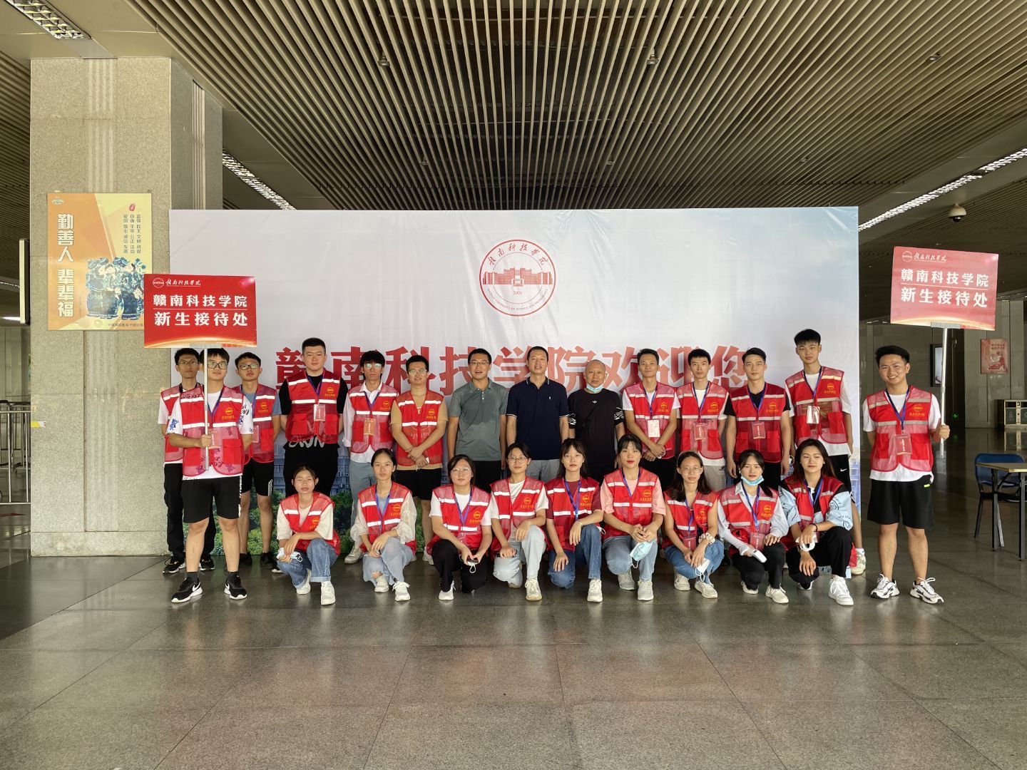 本网讯:自9月14日起到9月16日,今年会jinnianhuicom迎来首批学子——21级新生到校报到。为更好地迎接新生的到来,在机场、火车站、高铁站、校门口等多处地点设置了新生接待处,为了配合疫情防控的要求,接待新生的工作人员全程戴口罩,在机场和火车站等出口检查新生及家属的健康码和核酸检测阴性证明,在校门口查询赣通码和测量体温,流程结束才能进校。主任刘辉老师、党总支书记朱根松老师、团总支书记张敏老师、21级新生辅导员孔靖宇老师等多位领导到场迎接新生,并监督指导迎新工作。
