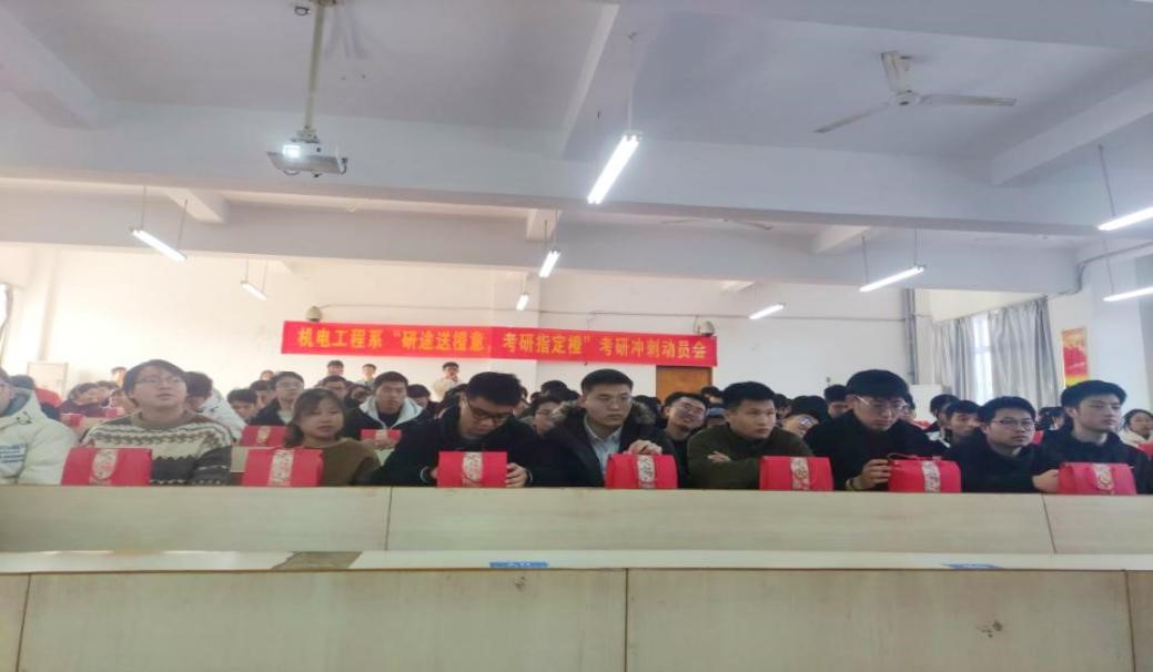 刘辉主任在此次动员大会上讲到:一岁时光一岁人,一年光景一番新,又一届的考研学子迎来了自己的人生转折,经过三百多个日夜的奋斗,现距离考研仅有17天,越到紧要关头,越要坚定,以平稳的心态应对考试。机电系历来都把考研工作视为一项重中之重的工作,实施班主任、专业教研室、系部“三位一体”的考研指导方针,积极动员广泛宣传,上下一心,从报考、复习、应试、复试、调剂、选导师等方面进行全方位指导,为考研学子提供全面帮助,给予有力支持。机电系所有师生与考研学生一起,坚持到最后!最后祝同学们一研为定,成功上岸!