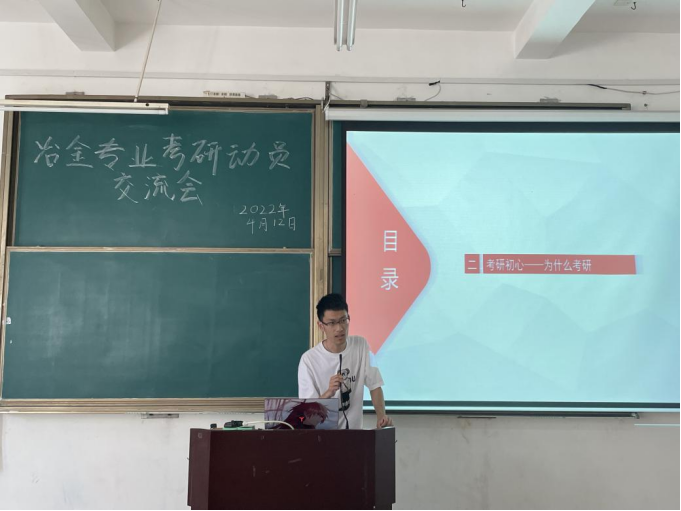 在冶金专业考研交流会上,肖志华副主任邀请18级冶金专业的学长学姐们分享经验。燕旭阳学长着重讲解每个科目的学习方法,在学习数学时,牢牢掌握知识点,并进行错题记录。通过英语真题记忆单词,要多进行真题模拟。专业课和政治的复习可以适当延后,政治的背诵和刷题也可以伴随冲刺阶段一起进行。罗青学姐分享了展开复习以及高效刷题的方法,还对考研时该如何选择老师的问题进行了讲解,同时向同学们强调了时间规划的重要性及分享在备考时整理笔记的经验。聂思怡学姐则强调了目标的的重要性,首先要明确一个目标,这样才有不断努力的动力,其次就是心态,不要和别人比进度,要找到适合自己的节奏。