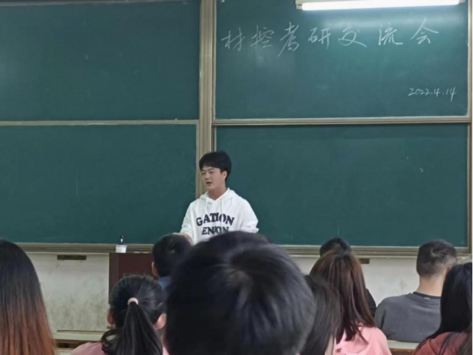 在材控专业交流会上,付求涯老师邀请刘敏、刘德见、吴童等优秀的学长学姐来分享考研备考的经验。会上,刘敏学长主要针对目标院校方面进行分享,他建议在选择院校时可以考虑这些方面:1、院校选取考虑以后准备工作的城市;2、是否要向更高的目标院校冲击;3、报考往年“报录比”更高的院校报考。刘德见学长对各科学习方法做了详细的分享,包括如何制定考研目标,收集资料,如何安排复习时间以及如何更有效地利用考研真题,并且推荐了可靠的网课老师和学习资料。洪鑫学长结合他的考研经历,从数学、英语、政治、专业课等方面阐述了具体的复习方法,并强调要学会用科学的方法排解不良的情绪并积极调整心态。