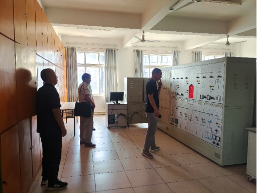 本网讯:暑期将至,针对实验室可能存在的安全隐患,机电系主任刘辉、副主任关开荣、机电系实训中心主任钟涛生与实训中心管理人员等一行人,在6月27日下午对实验室进行了安全检查。