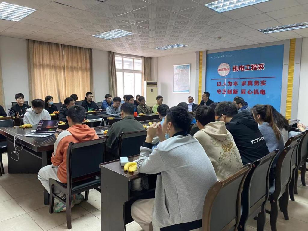 最后,刘辉主任对各位考研学子送去了“一战成硕,一研为定”的美好祝愿。一直以来,机电工程系不断夯实“班主任+辅导员宣传动员、专业老师+教研室的指导辅导、系领导+辅导员的后勤服务”的“三位一体”考研工作机制,据统计,机电工程系2022届毕业生中,录取率达高达28%,实现了原定“录取率突破20%,录取人数突破100人”的双突破。“黄沙百战穿金甲,不破楼兰终不还。”相信在优秀榜样的指引下,机电系学子定会汲取经验,刻苦学习,锲而不舍地为自己的目标而努力奋斗,争取来年再创佳绩。
