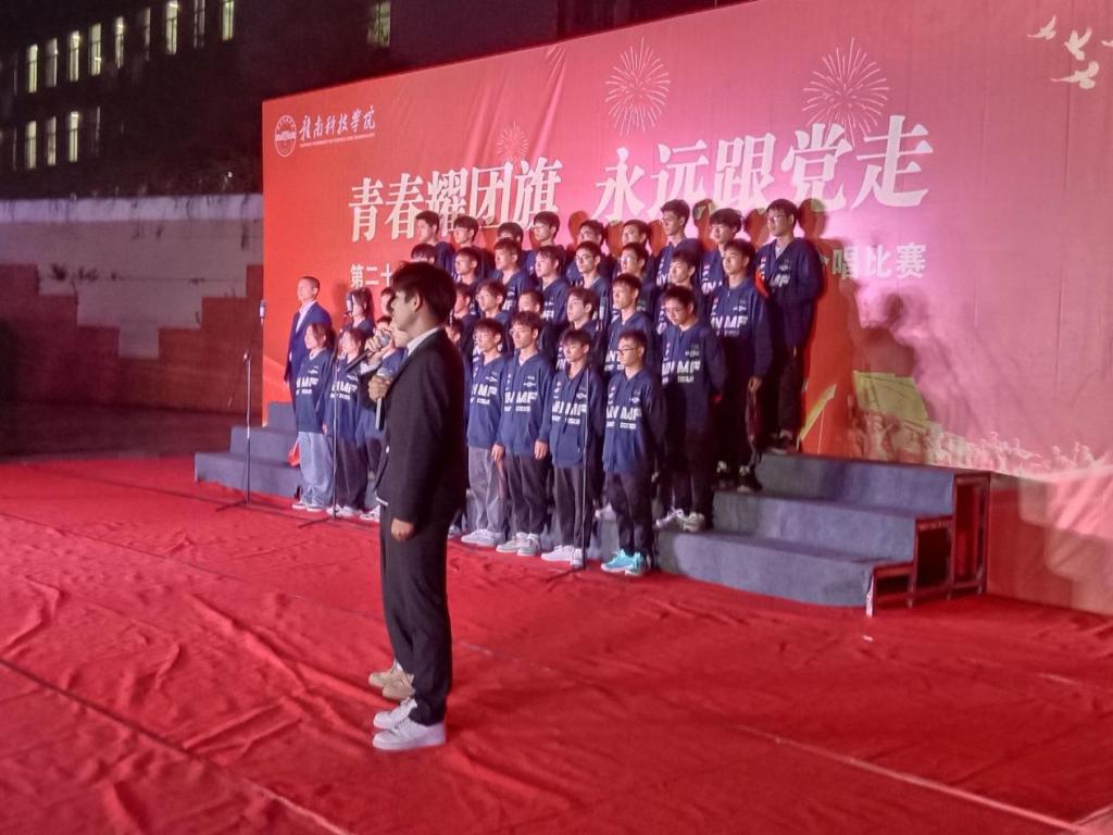 时间来到晚上七点,夜幕也已来临。机电工程系刘辉主任、肖志华老师和思政部徐帆老师也出席了此次比赛。在激烈而又紧张的比赛过程中,冶金222班以优异成绩斩获一等奖,机器人221班与材控221班荣获二等奖,冶金221班、机械223班与自动化222班荣获三等奖。冶金221班陈笑涵同学荣获“最佳指挥”称号,机器人221班黄景森同学荣获“最佳领唱”称号,材控221班王浩志同学荣获“最佳朗诵”称号。