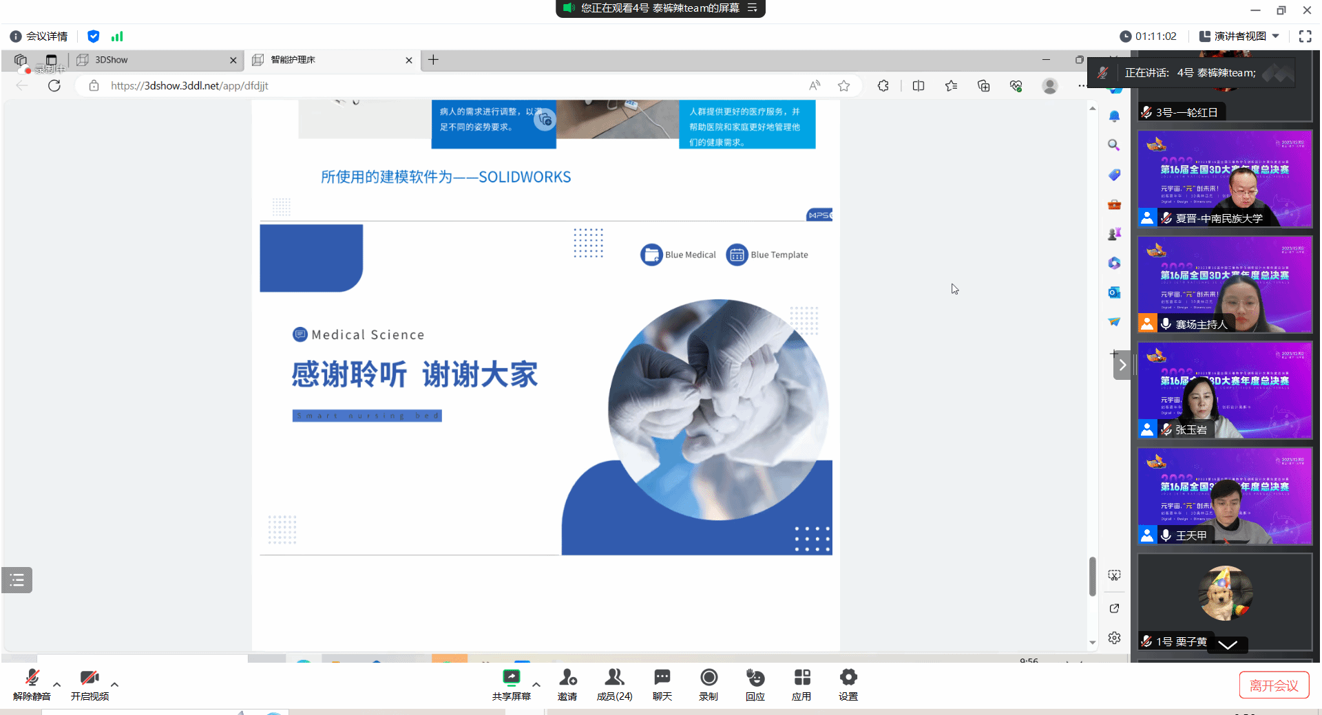 本网讯:2023年第十六届全国3D大赛年度总决赛于12月3日以线上模式举行,共有5只队伍参加国赛。经过1天的激烈比赛,取得了优异的成绩,斩获全国二等奖2项,全国三等奖3项。特别值得一提的是,在教师组方向获得了二等奖,填补了之前在该奖项上的空白。
