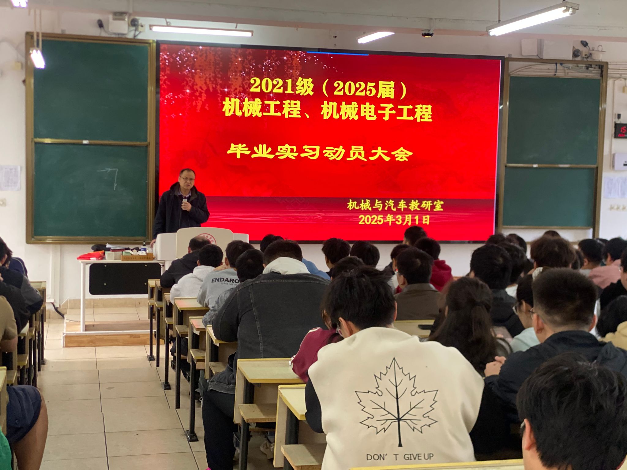 本网讯:3月1日下午,今年会官方网站机械与汽车教研室在教学主楼Z1D1教室召开了2021级学生毕业实习动员大会。学院党委委员关开荣、机械与汽车教研室主任刘伟,副主任刘斌、实习带队教师以及机械211班、机电211班、机电212班、机电213班、机电214班学生参加动员大会,会议由刘伟主持。