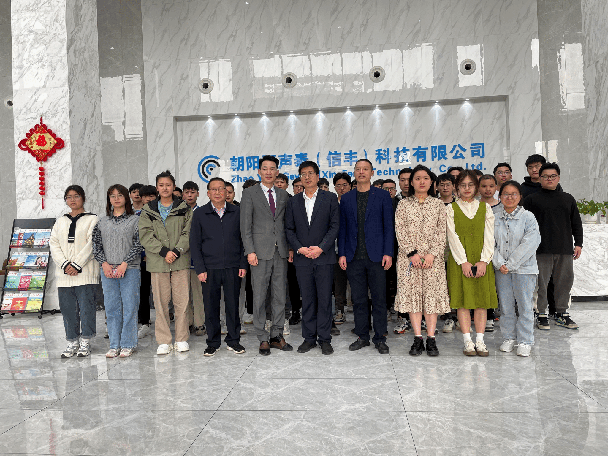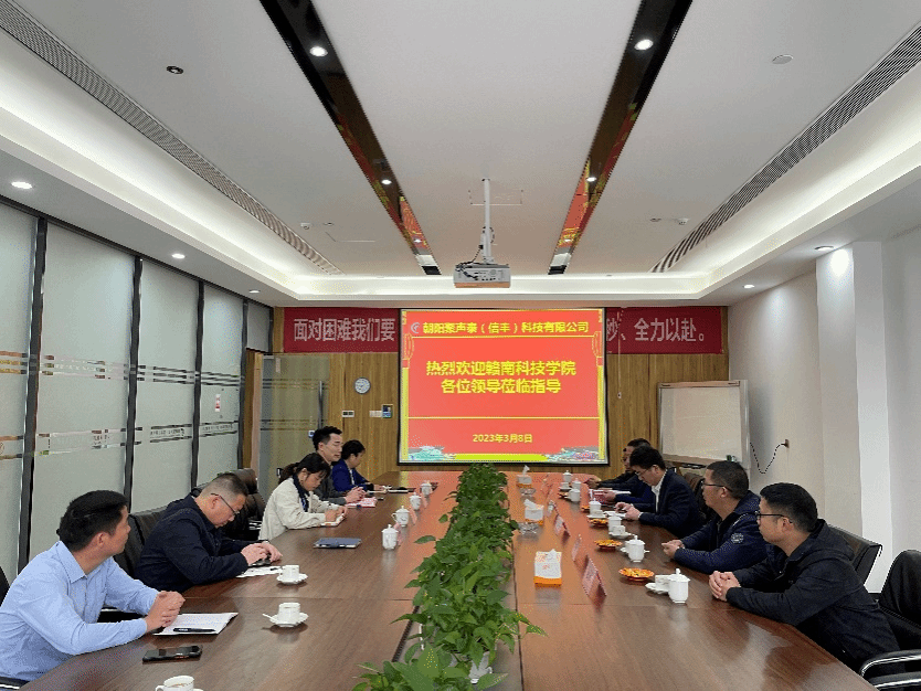 本网讯:为推进校企合作、促进产学研融合、提升人才培养与就业、推动地方经济社会发展,3月8日,过渡期管理委员会委员付玉华等一行,赴朝阳聚声泰(信丰)科技有限公司(以下简称“朝阳聚声泰”)进行校企合作洽谈,朝阳聚声泰副总经理谈国民等热情接待了付玉华等一行。信丰县人社局党组书记、局长赖运建,智能制造学院、材料学院负责人刘辉和40余名实习师生共同参与交流。