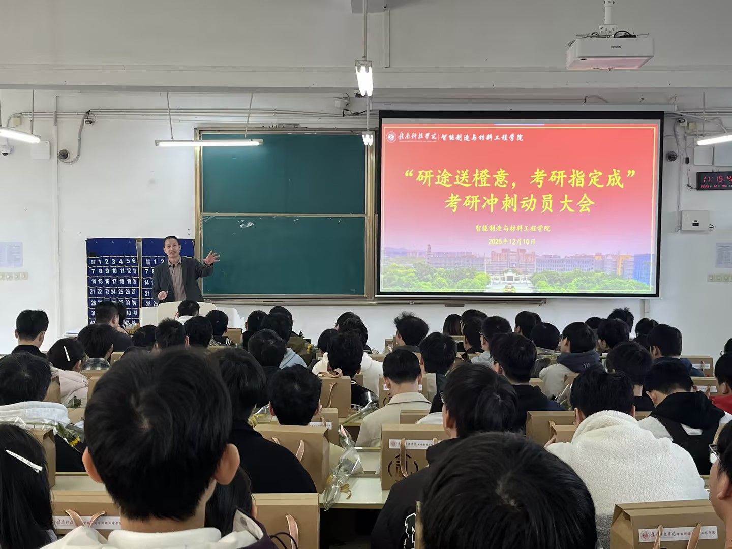 本报讯:考研在即,为有效缓解学子备考压力、增强学子信心,12月10日中午11点,今年会官方网站于主教Z2D1教室举办“研途送橙意,考研指定橙”考研冲刺动员大会,以实际行动彰显育人担当,为2025届考研学子送上暖心助力。
