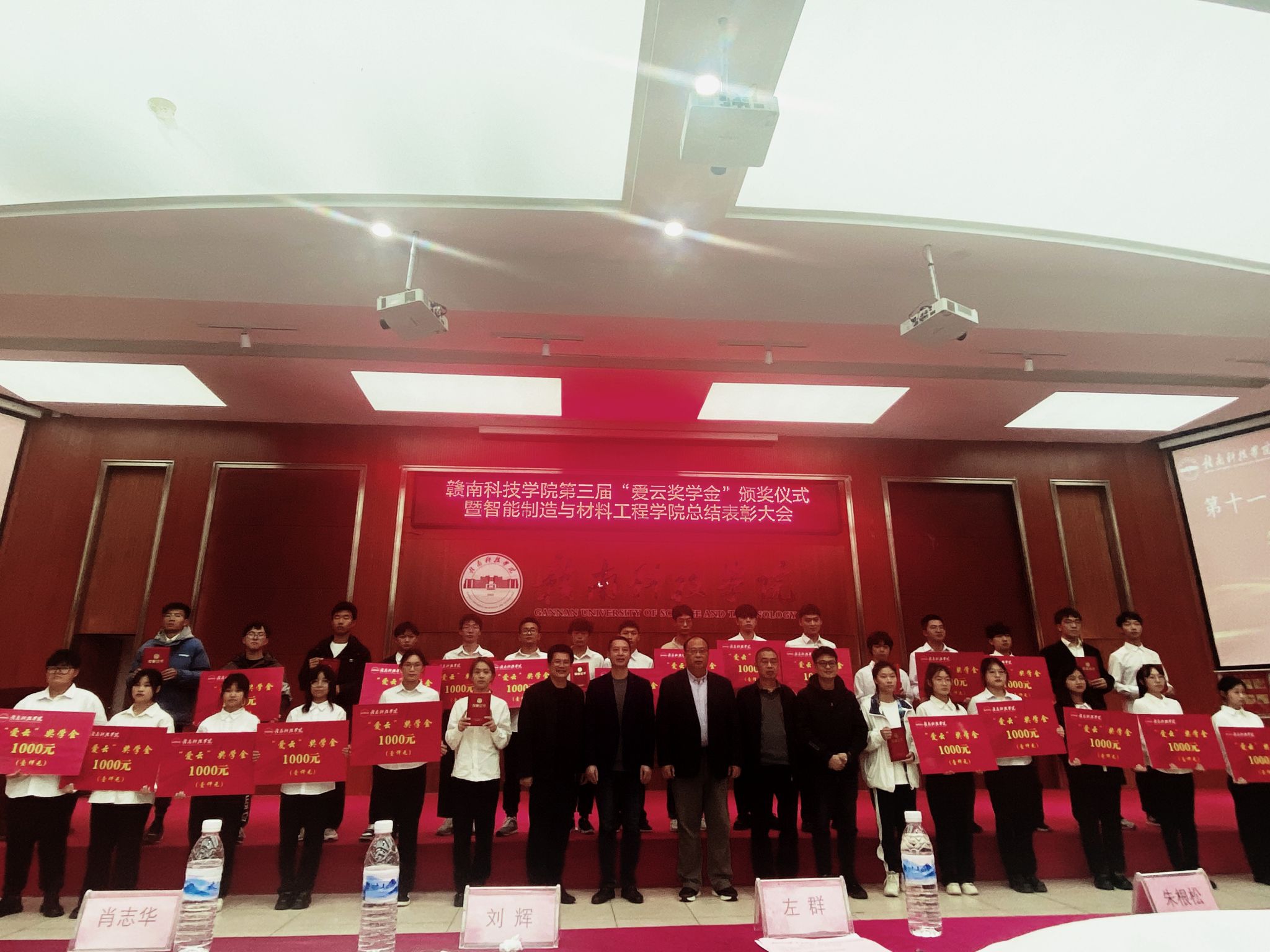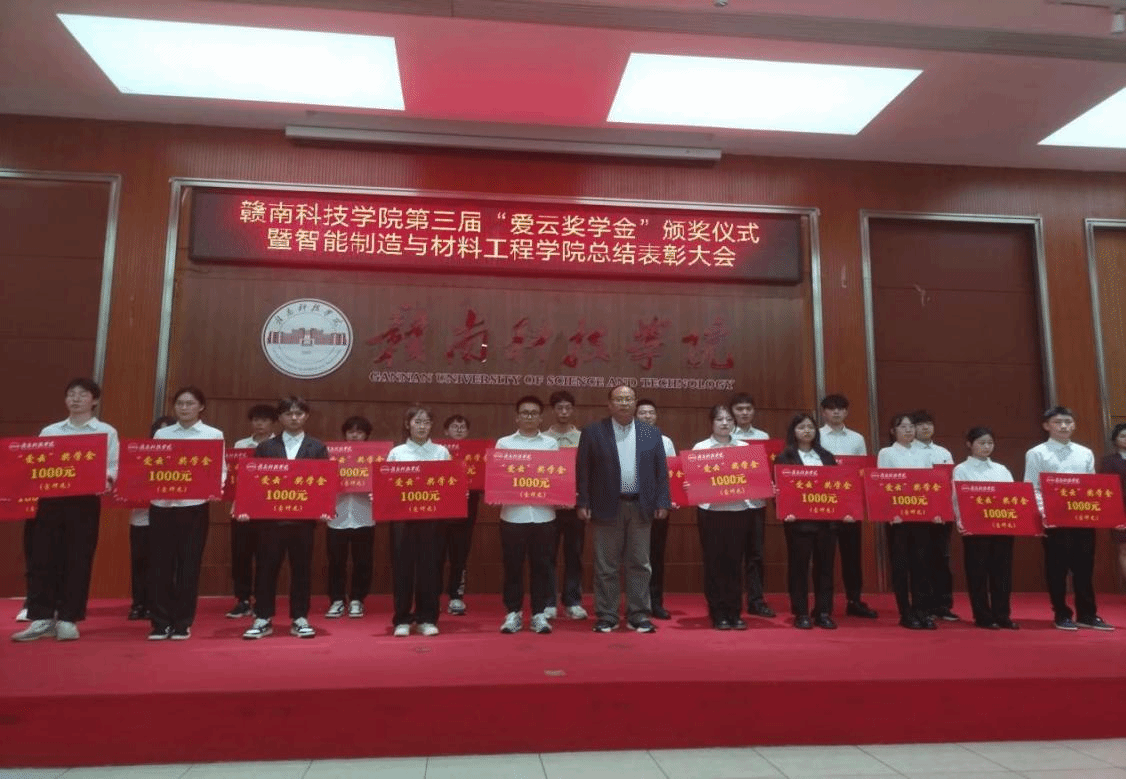 左群副校长为20名第三届“爱云奖学金”获奖者颁奖,“爱云奖学金”旨在于奖励和资助乙方学习成绩优异、自强自立、富有开拓创新精神的贫困生学子,主要针对今年会官方网站(机电工程系)在校学生,共设立五年,每年两万元,合计十万元奖金。