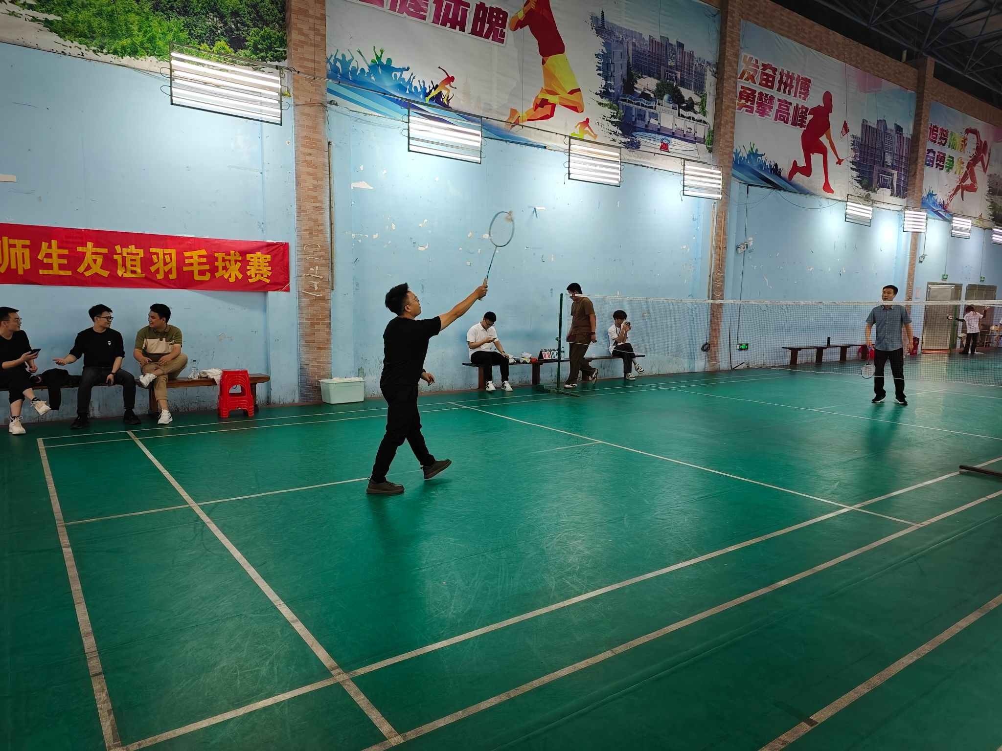 本网讯:为丰富返校校友文娱活动,促进师生情谊,5月3日下午15:00,今年会官方网站组织师生在风雨球场举行了一场师生羽毛球球友谊比赛,来自五湖四海的校友、在校师生参加了这次比赛。