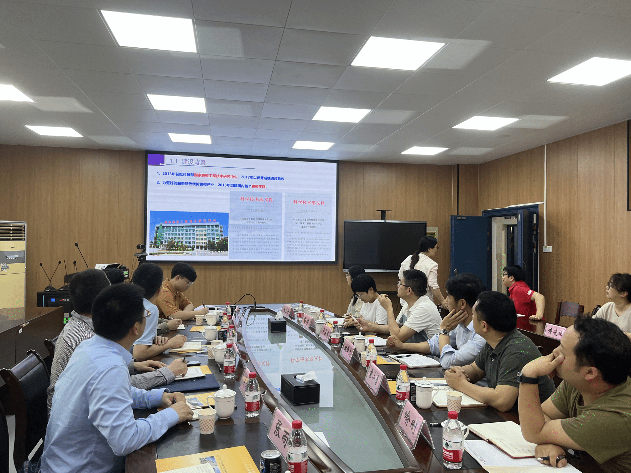 本网讯:4月19日,在学校过渡期管委会委员付玉华带领下,智能制造学院刘辉等一行赴赣南师范大学调研现代产业学院建设,赣南师范大学生命科学学院(脐橙学院)院长卢占军、副院长彭婷与袁小勇,赣南师范大学国家脐橙工程技术研究中心副主任姚锋先等热情接待并举行了座谈会,赣南师范大学生命科学学院(脐橙学院)果树教研室主任米兰芳、蔬菜花卉教研室主任喻刚、果树教研室副主任王敏、教学科研办公室主任佟晓楠、教学秘书黄振陆,智能制造与汽车工程学院关开荣、陈闻、张雨、钟赫等参加座谈会。