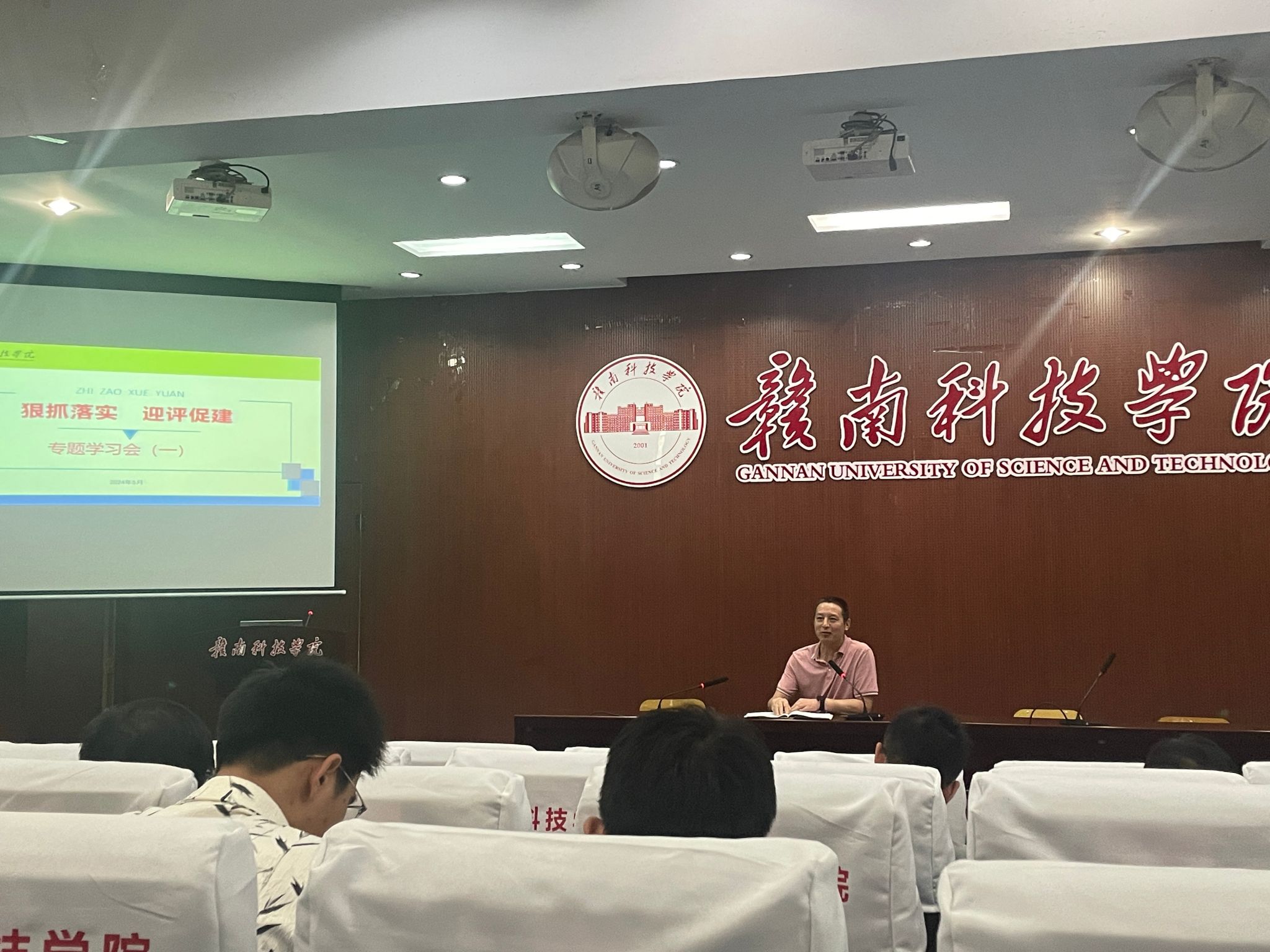 本网讯:为了更高效推动本科教学工作合格评估工作开展,更深入理解本科教学工作合格评估的内涵。5月7日,我院在MBA报告厅召开全院教职工评建知识专题学习会,号召和动员全院教职工以“迎评促建,狠抓落实,人人学习,争先竞优”的精神面貌,全力以赴地投入到评估工作当中。