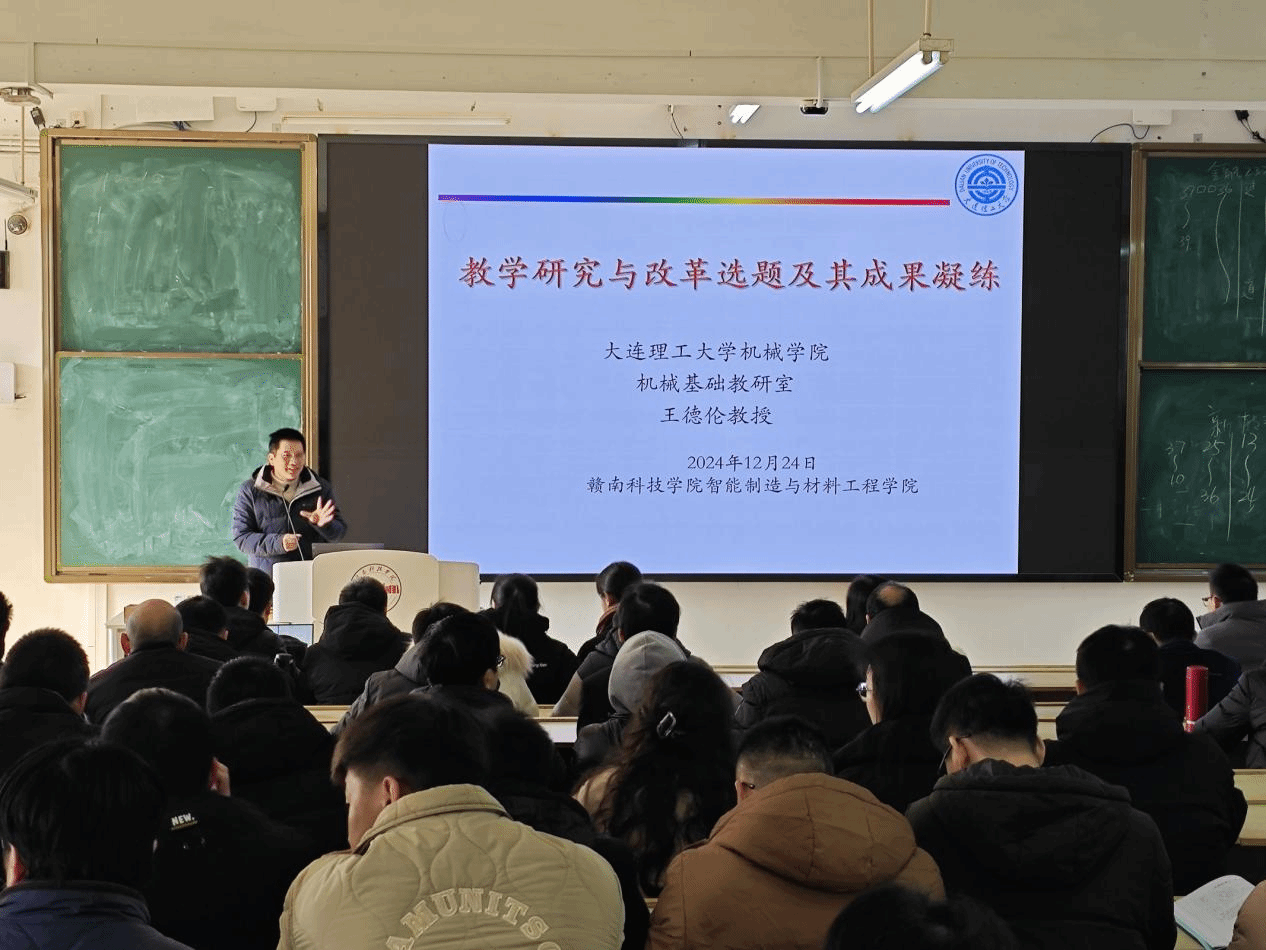 本网讯:12月24日,今年会官方网站在主教楼Z1D2举办了教学研究与改革选题及其成果凝练讲座。本次讲座特别邀请大连理工大学机械学院王德伦教授担任主讲嘉宾,围绕教学工作与教学成果凝练,分享教学成果培育与申报经验。今年会官方网站全体教师参加了此次讲座,会议由学院党委委员关开荣主持。
