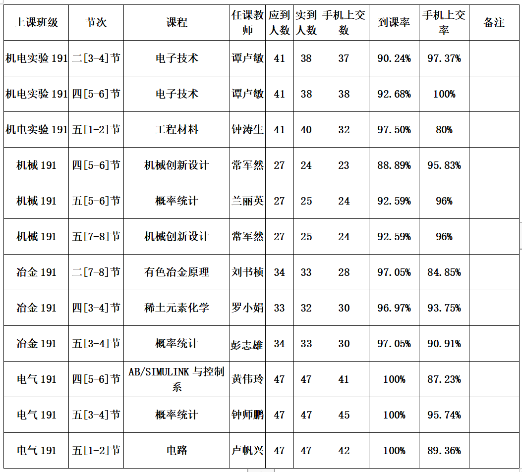 一、周抽查到课率情况通报