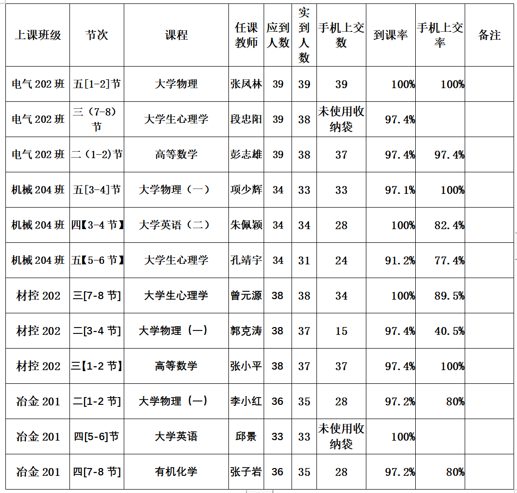 一、第十周抽查到课率情况通报
