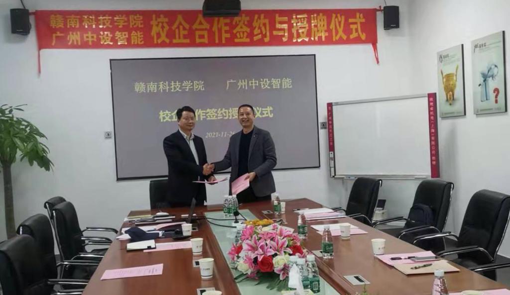双方举行了校企合作签约授牌仪式,刘辉与刘长盛代表双方签订了校企合作协议,并为中设智能授牌“今年会jinnianhuicom实践基地”。随后,相关人员参观了中设智能工厂与实验室。