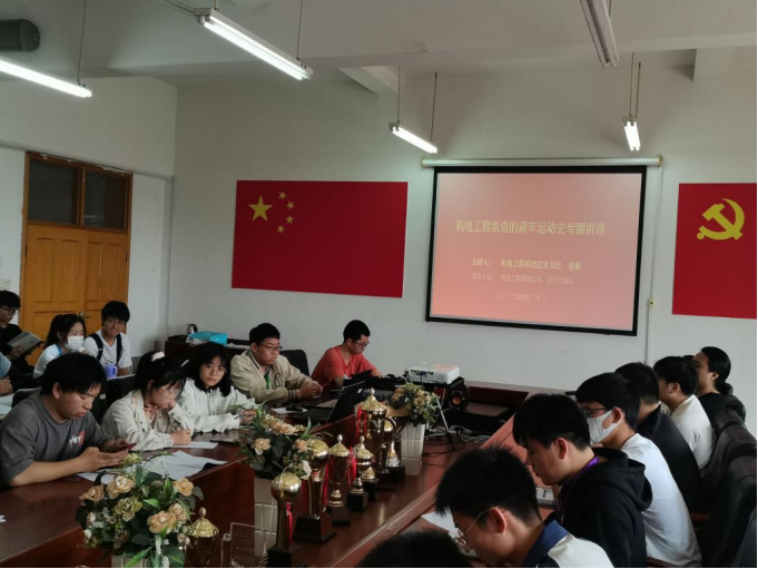 本网讯:2022年4月22日,值此建团一百周年之际,为充分带领广大团员青年共同深入学习党领导中国青年运动的光辉历程,团结引领广大团员青年在学思践悟中踔厉奋发、砥砺笃行,机电工程系围绕“喜迎二十大、永远跟党走、奋进新征程”主题,组织开展“党的青年运动史”专题讲座。机电工程系团总支书记张敏老师主持召开机电工程系党的青年运动史专题讲座,机电工程系团总支学生会工作成员参加本次讲座。